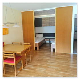 - Wohnzimmer mit 2 Wandschrankbetten